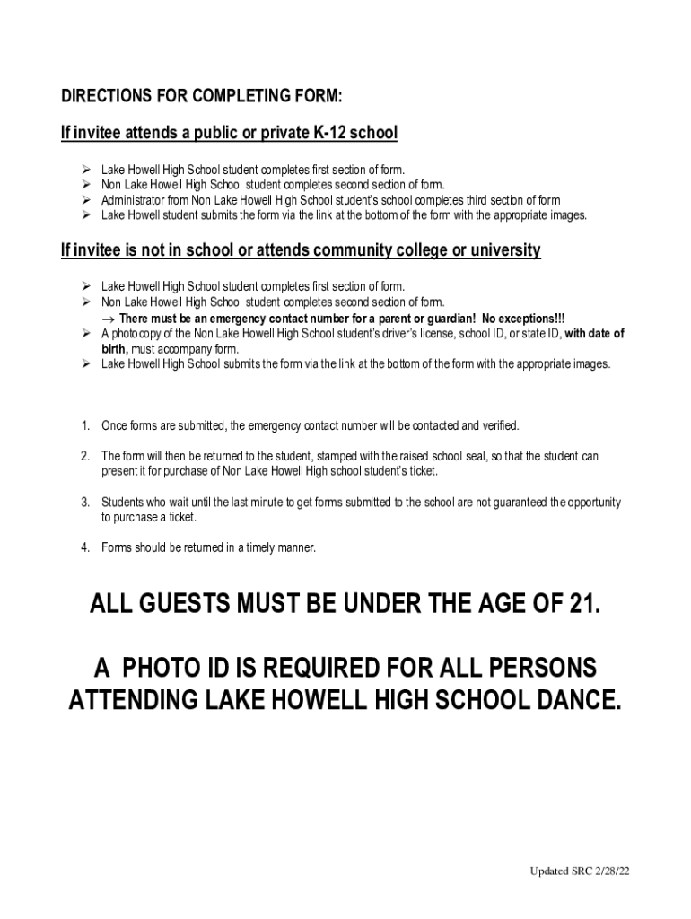 DIRECTIONS FOR COMPLETING FORM: If invitee attends a public or private K12 school Lake Howell High School student completes first section of form. Non Lake Howell High School student completes second
