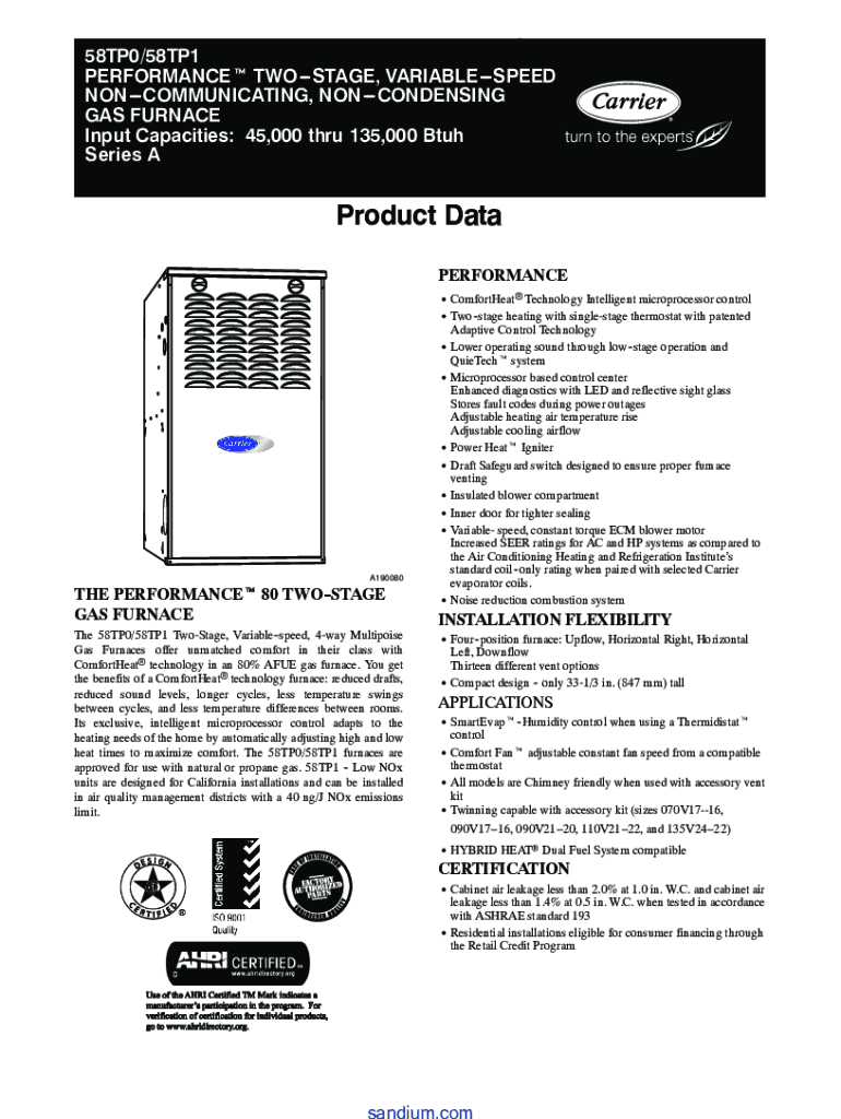 Get the free Performance 80 Carrier 58TP Furnace - Fully Installed from