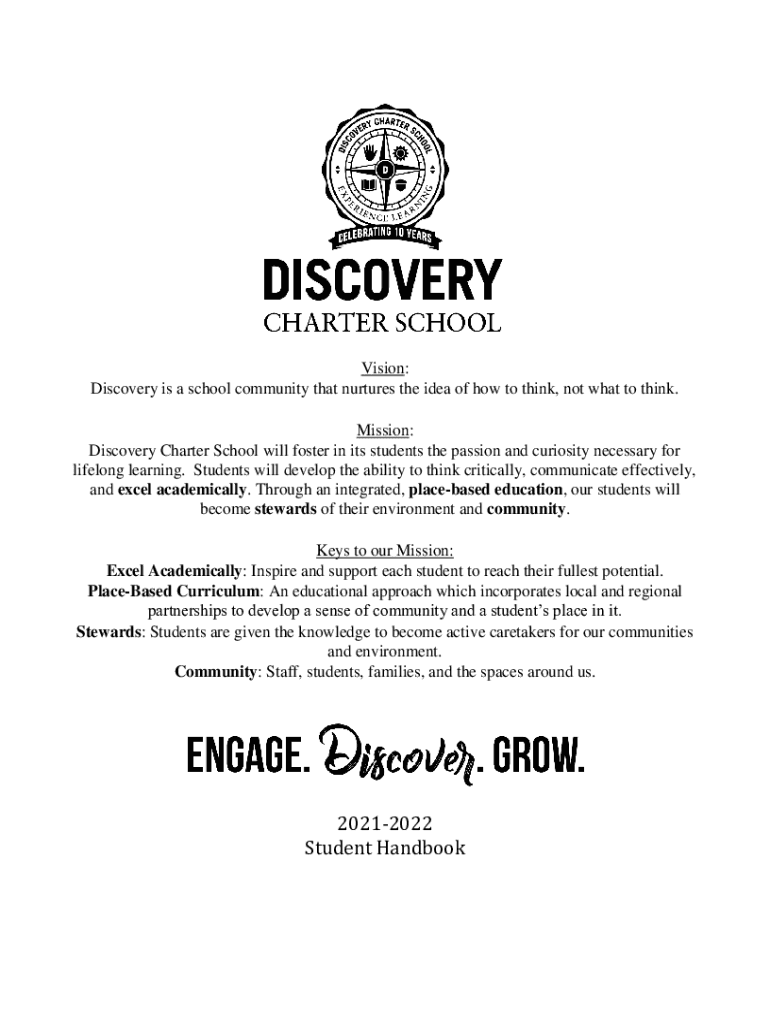 Vision: Discovery is a school community that nurtures the idea of how to think, not what to think. Mission: Discovery Charter School will foster in its students the passion and curiosity necessary