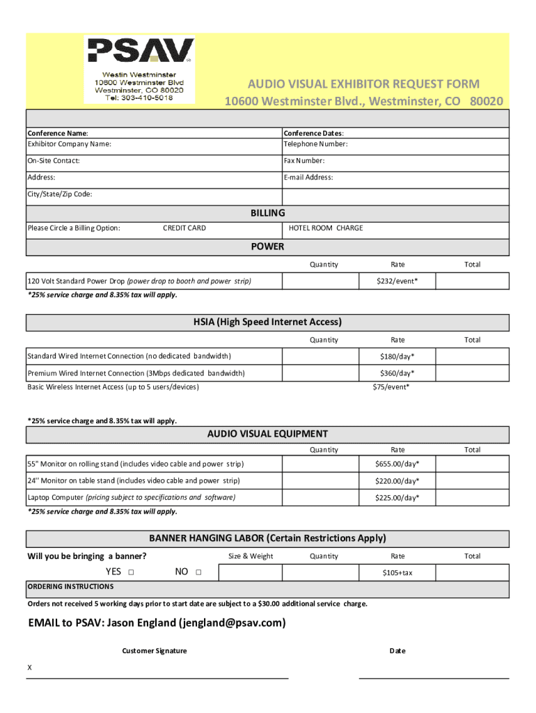 AUDIO VISUAL EXHIBITOR REQUEST FORM