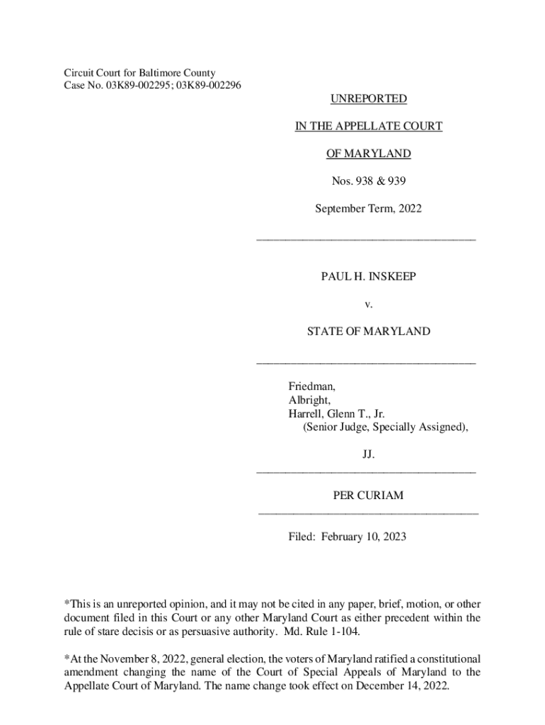 Circuit Court for Baltimore County Case No. 03K89002295; 03K89002296UNREPORTED IN THE APPELLATE COURT OF MARYLAND Nos. 938 & 939 September Term, 2022 ___PAUL H. INSTEP v. STATE OF MARYLAND ___ Friedman,