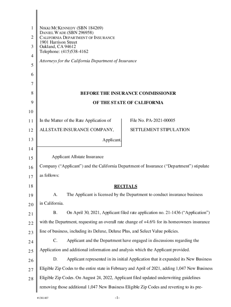 1 2 3NIKKI KENNEDY (SON 184269) DANIEL WADE (SON 296958) CALIFORNIA DEPARTMENT OF INSURANCE 1901 Harrison Street Oakland, CA 94612 Telephone: (415)53841624 Attorneys for the California Department