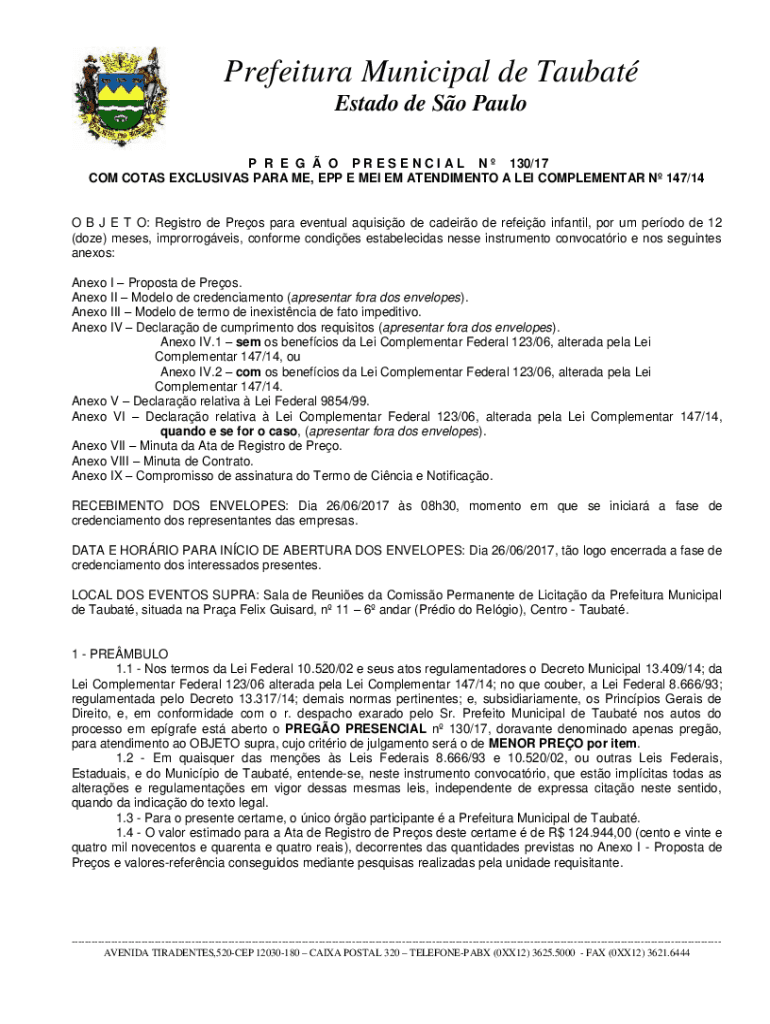 COM COTS EXCLUSIVES PARA ME, EPP E ME IEM AMENDMENT A LEI COMPLEMENTARY N 147/14O B J E T O: Registry de Preos