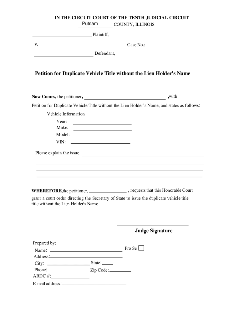 Get the free v. Petition for Duplicate Vehicle Title without the Lien ...