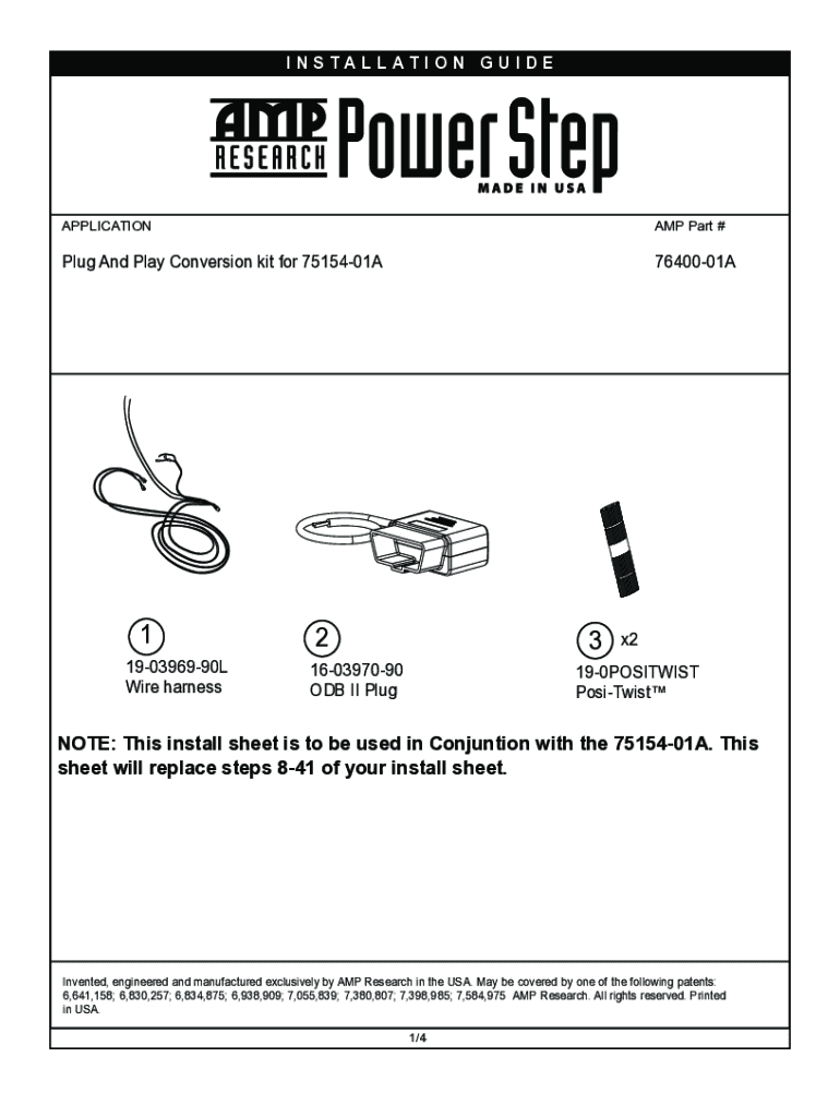 INSTALLATION GUIDEAPPLICATIONAMP Part #Plug And Play Conversion kit for 7515401A7640001A1