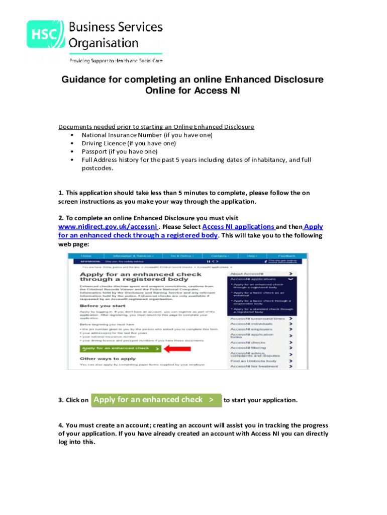 Guidance for completing an online Enhanced Disclosure Online for Access Documents needed prior to starting an Online Enhanced Disclosure National Insurance Number (if you have one) Driving License