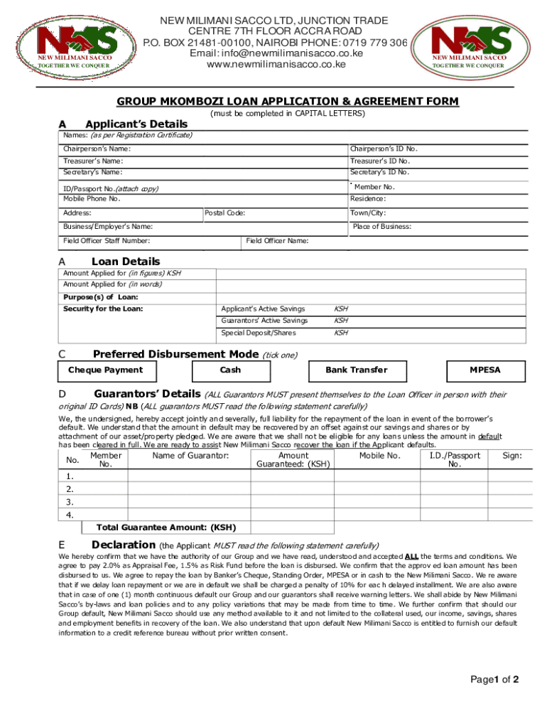 New Milimani SaccoTogeformr WE is a form that must be filled out by members of the Milimani Sacco.