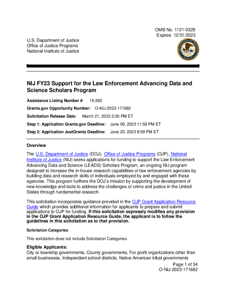 OMB No.11210329 Expires 12/31/2023 U.S. Department of Justice Office of Justice Programs National Institute of Justice FY23 Support for the Law Enforcement Advancing Data and Science Scholars Program