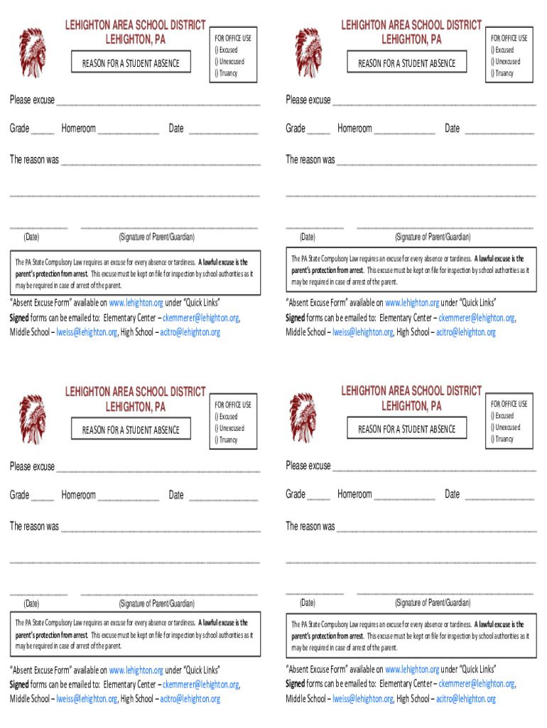 REASON FOR A STUDENT ABSENCELEHIGHTON AREA SCHOOL DISTRICT