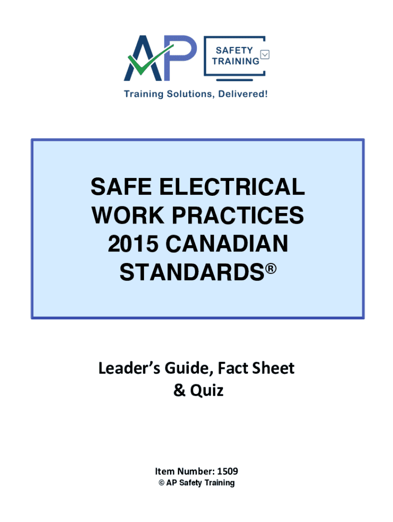 SAFE ELECTRICAL WORK PRACTICES 2015 CANADIAN STANDARDSLeaders Guide, Fact Sheet & Quite Number: 1509 AP Safety Trainings espouse Leaders Guide is provided to assist in conducting a successful presentation.