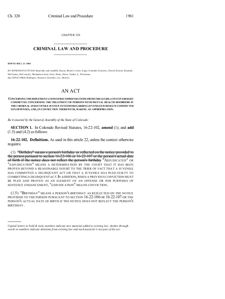 Ch. 320Criminal Law and Procedure1961CHAPTER 320___ CRIMINAL LAW AND PROCEDURE ___ HOUSE BILL 211064 BY REPRESENTATIVE(S) Benitez and Mobile, Bacon, Bennett, Cutter, Edgar, Gonzales Gutierrez, Herod,