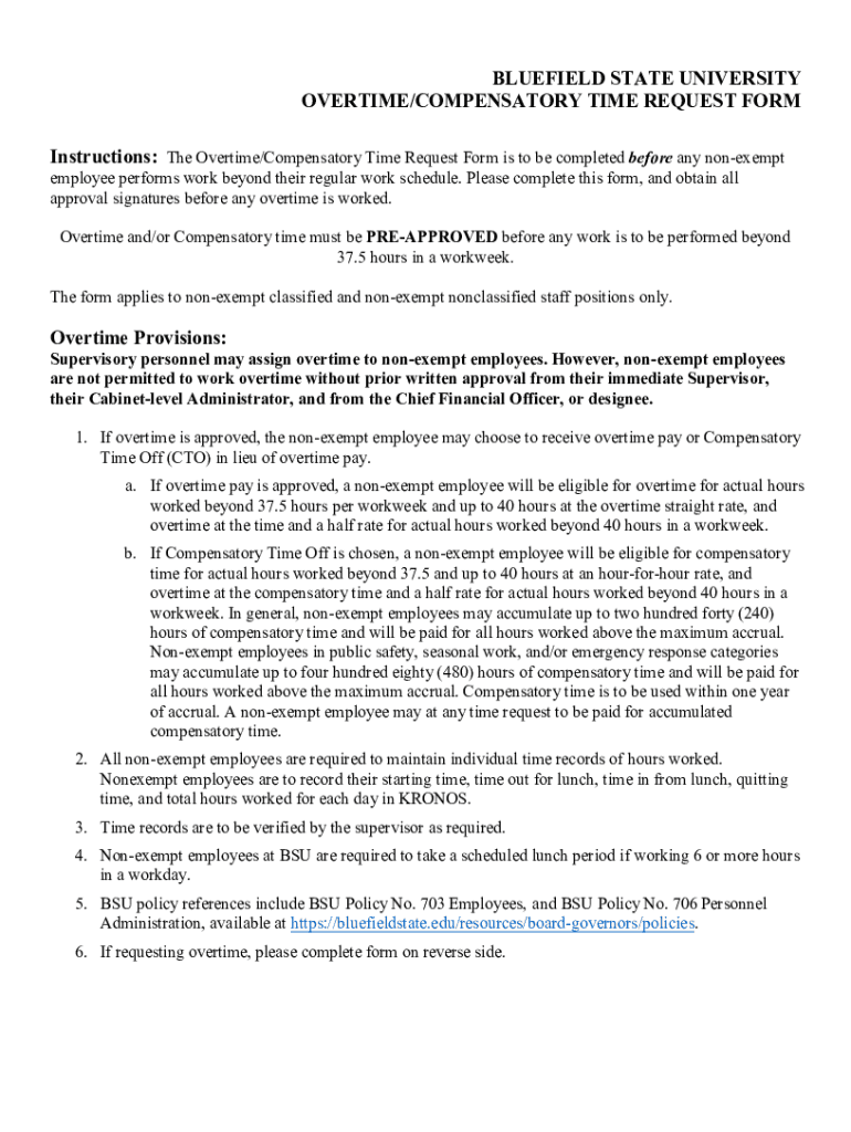 Get the free bluefield state college compensatory time/overtime request ...