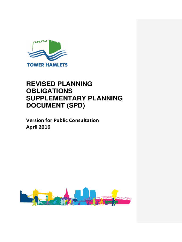 REVISED PLANNING OBLIGATIONS SUPPLEMENTARY PLANNING DOCUMENT (SPD) Version for Public Consultation April 2016Contents Overview21. Introduction Borough Level CIL Mayoral CIL and Mayoral Section 1064