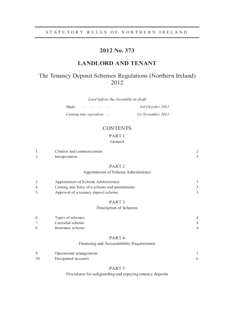 Get the free The Tenancy Deposit Schemes Regulations (Northern ...