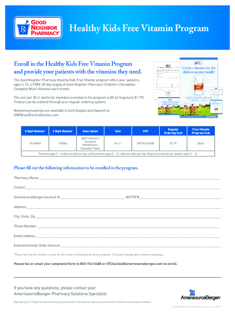 Healthy Kids Free Vitamin ProgramEnroll in the Healthy Kids Free Vitamin Program and provide your patients with the vitamins they need. The Good Neighbor Pharmacy Healthy Kids Free Vitamin program
