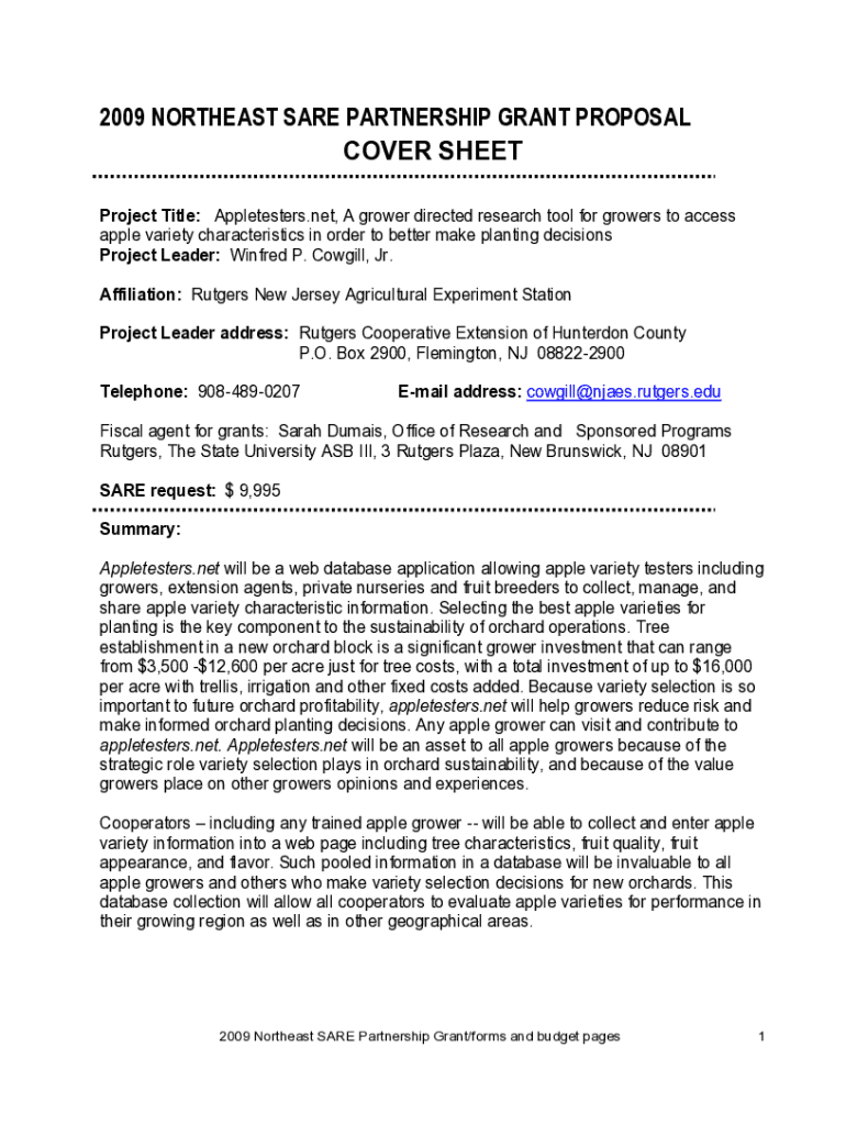 2009 NORTHEASTS ARE PARTNERSHIP GRANT PROPOSAL COVER SHEET Project Title: Apple testers.net, A grower directed research tool for growers to access apple variety characteristics in order to better