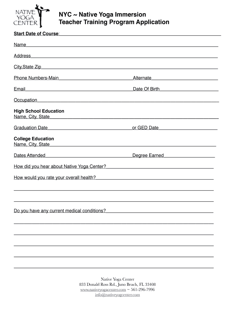 How to fill out Native Yoga Immersion Teacher Training Program Application