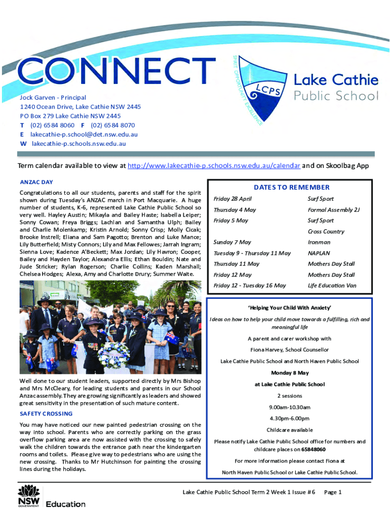 Jock Garden Principal 1240 Ocean Drive, Lake Kathie NSW 2445 PO Box 279 Lake Kathie NSW 2445 T (02) 6584 8060 F (02) 6584 8070 E lakecathiep.school@det.nsw.edu.au W lakecathiep.schools.NSW.edu.after