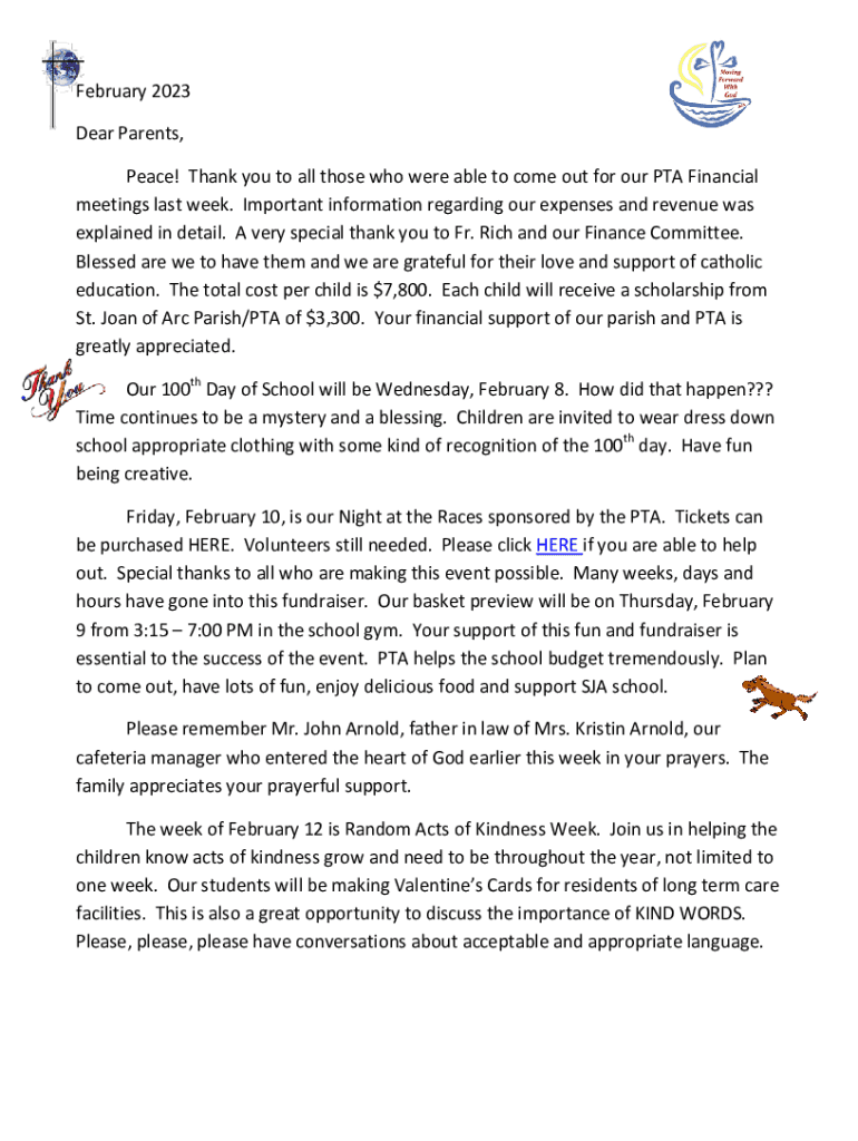 February 2023 Dear Parents, Peace! Thank you to all those who were able to come out for our PTA Financial meetings last week. Important information regarding our expenses and revenue was explained