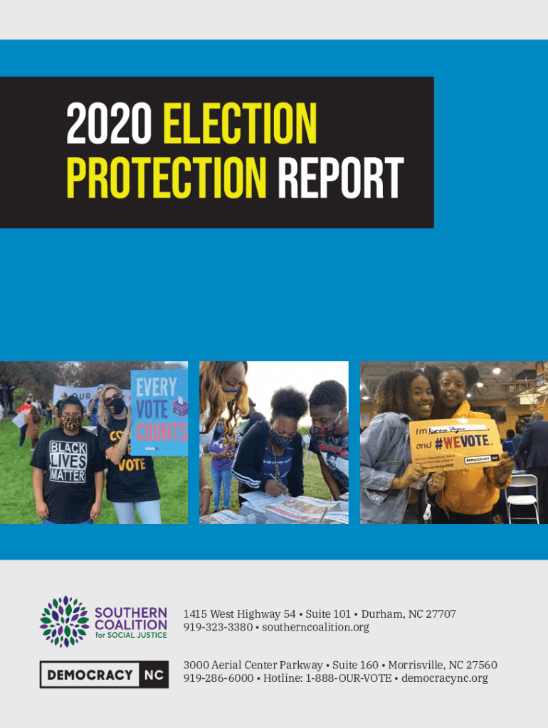 2020 Election Protection REport1415 West Highway 54 Suite 101 Durham, NC 27707 9193233380 southern coalition.org 3000 Aerial Center Parkway Suite 160 Mooresville, NC 27560 9192866000 Hotline: 1888OURVOTE