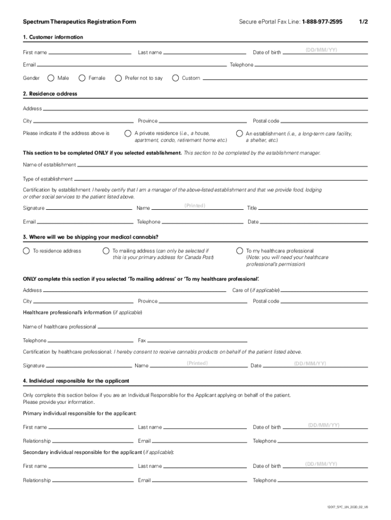 Canada Spectrum Therapeutics Registration Form 2020-2026 free printable template