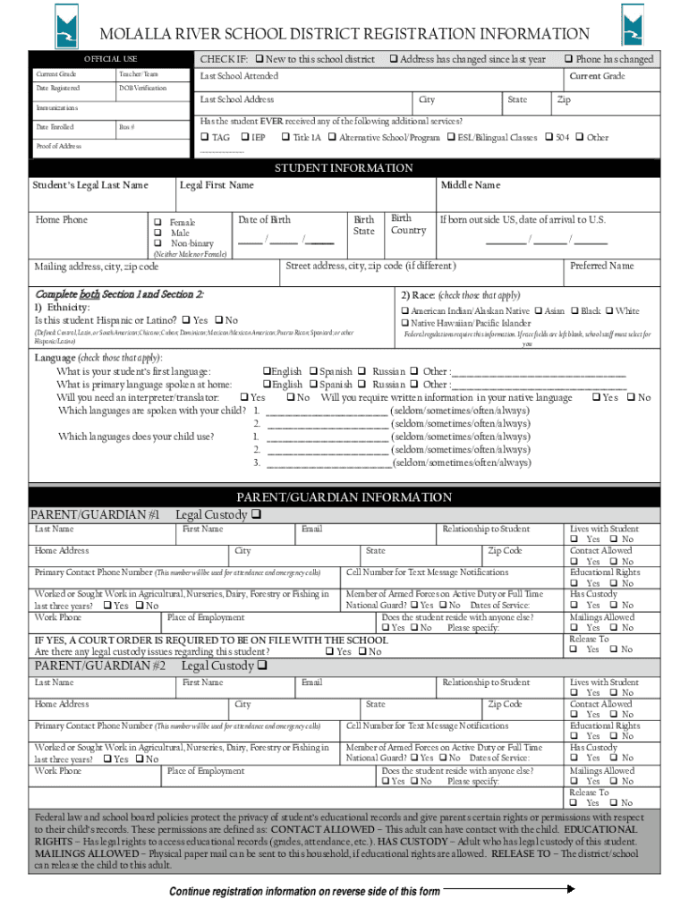 Get the free Online Registration - Molalla River School District - mhs molallariv k12 or