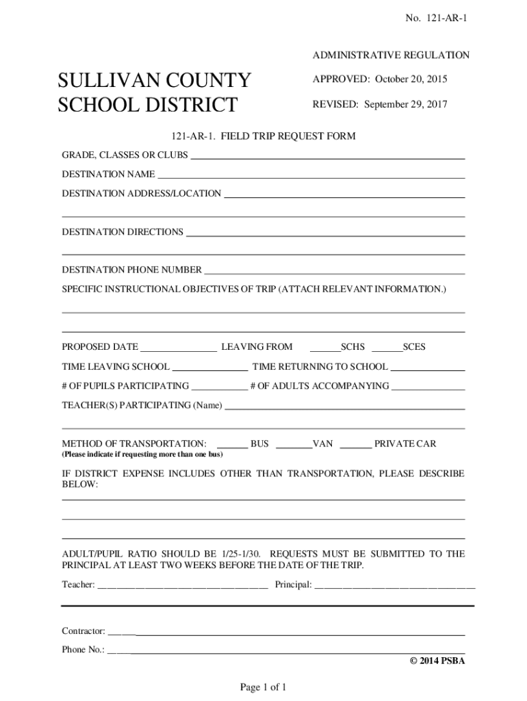 REVISED: September 29, 2017121AR1. FIELD TRIP REQUEST FORM
