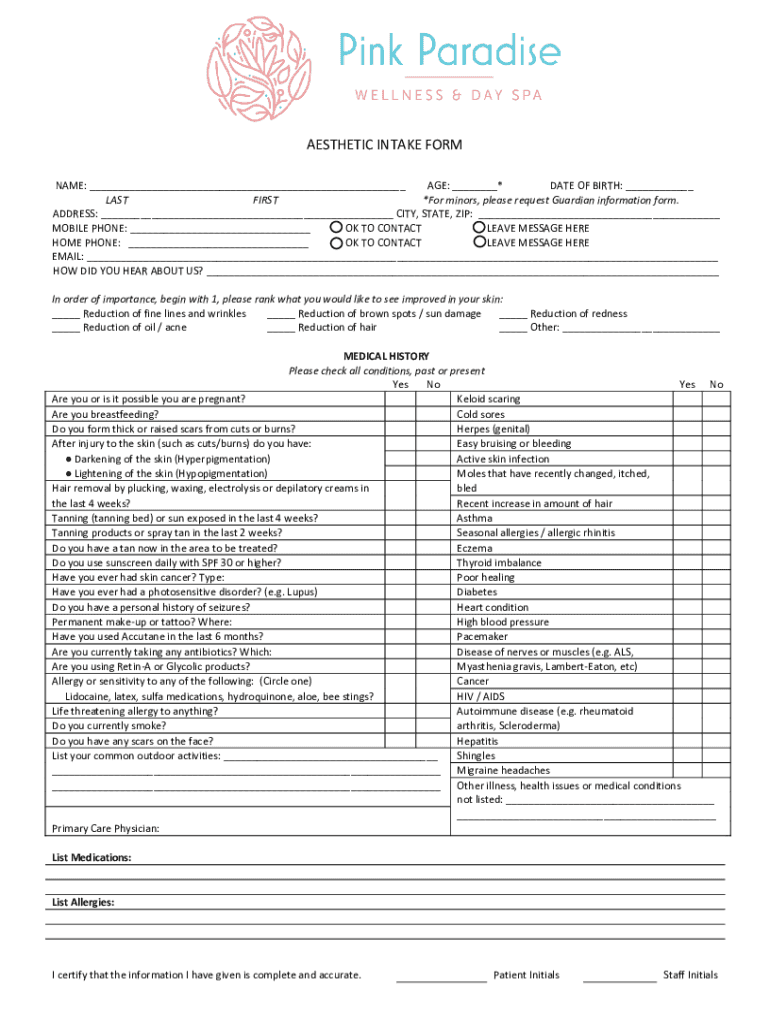 Get the free AESTHETIC INTAKE FORM