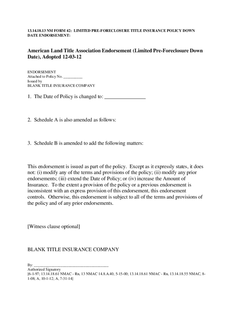 Get the free NM Form 42 Limited Pre-Foreclosure Title Insurance Policy ...