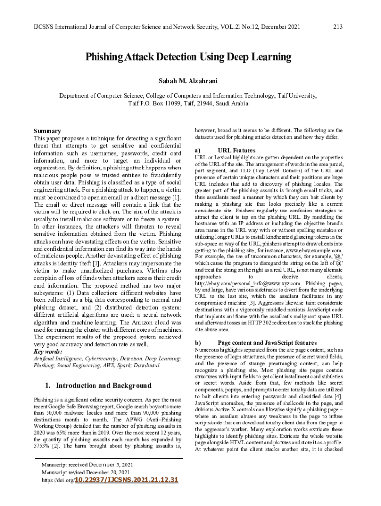 ICONS International Journal of Computer Science and Network Security, VOL.21 No.12, December 2021213Phishing Attack Detection Using Deep Learning Sarah M. Al-Zahrawi Department of Computer Science,