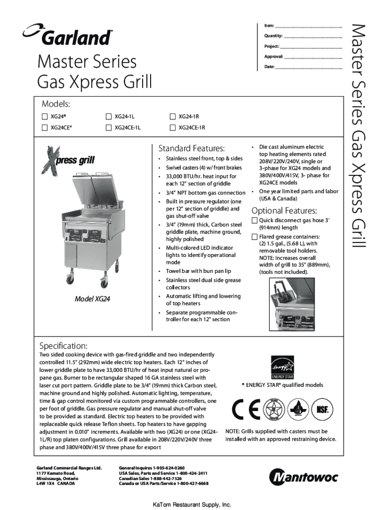 Get the free Master Series Xpress Grill Spec Sheet - Garland Group