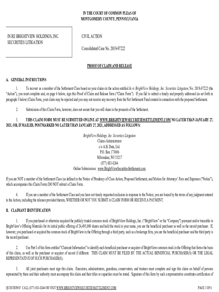 Get the free BrightView - Proof of Claim - AB Data Formatted 09-22-2020