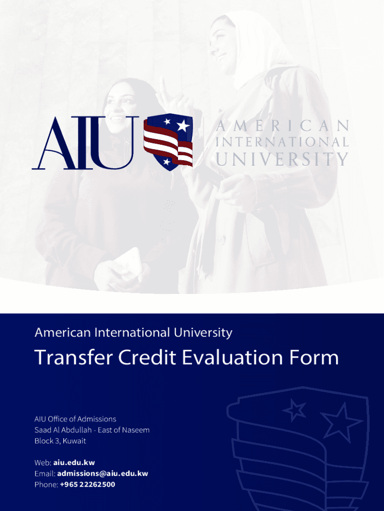 American International UniversityTransfer Credit Evaluation Format.edu.kw admissions@aiu.edu.kw +965 22262500Transfer Credit Evaluation Form I. Instructions Submit this form together with your completed