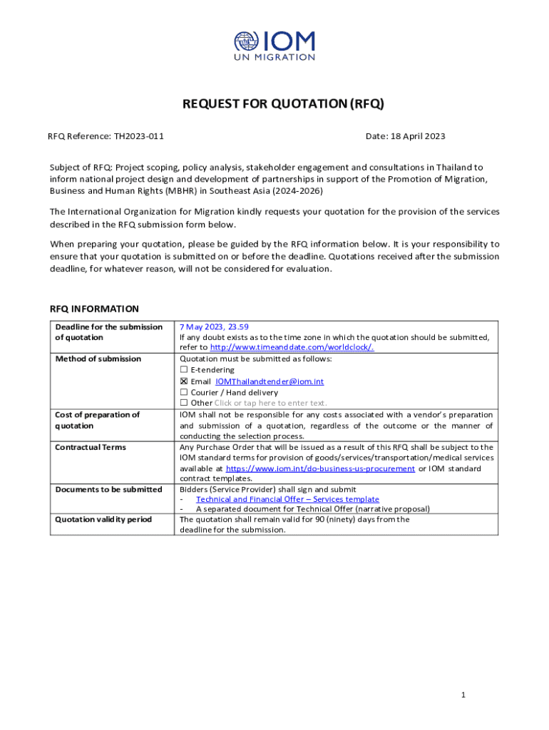 REQUEST FOR QUOTATION (RFQ) RFQ Reference: TH2023011Date: 18 April 2023Subject of RFQ: Project scoping, policy analysis, stakeholder engagement and consultations in Thailand to inform national project