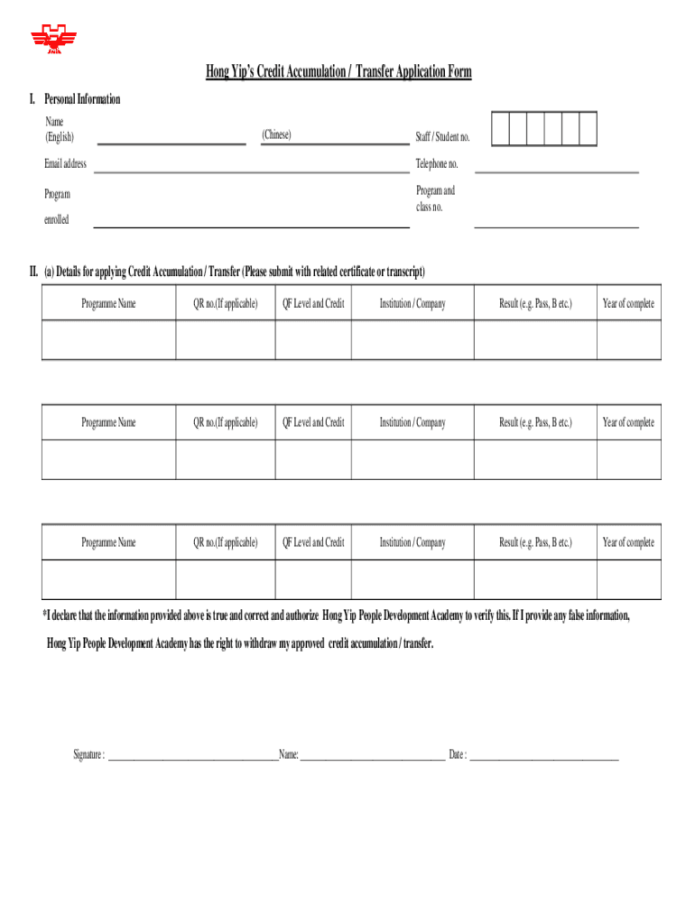 Get the free Hong Yip's Credit Accumulation / Transfer Application Form