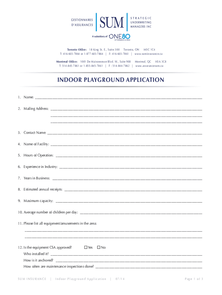 Toronto Office: 18 King St. E., Suite 300 Toronto, ON M5C 1C4 T: 4166037864 or 18776037864 | F: 4166037861 | www.suminsurance.ca Montreal Office: 1001 De Maisonette Blvd. W., Suite 900 Montreal, QC
