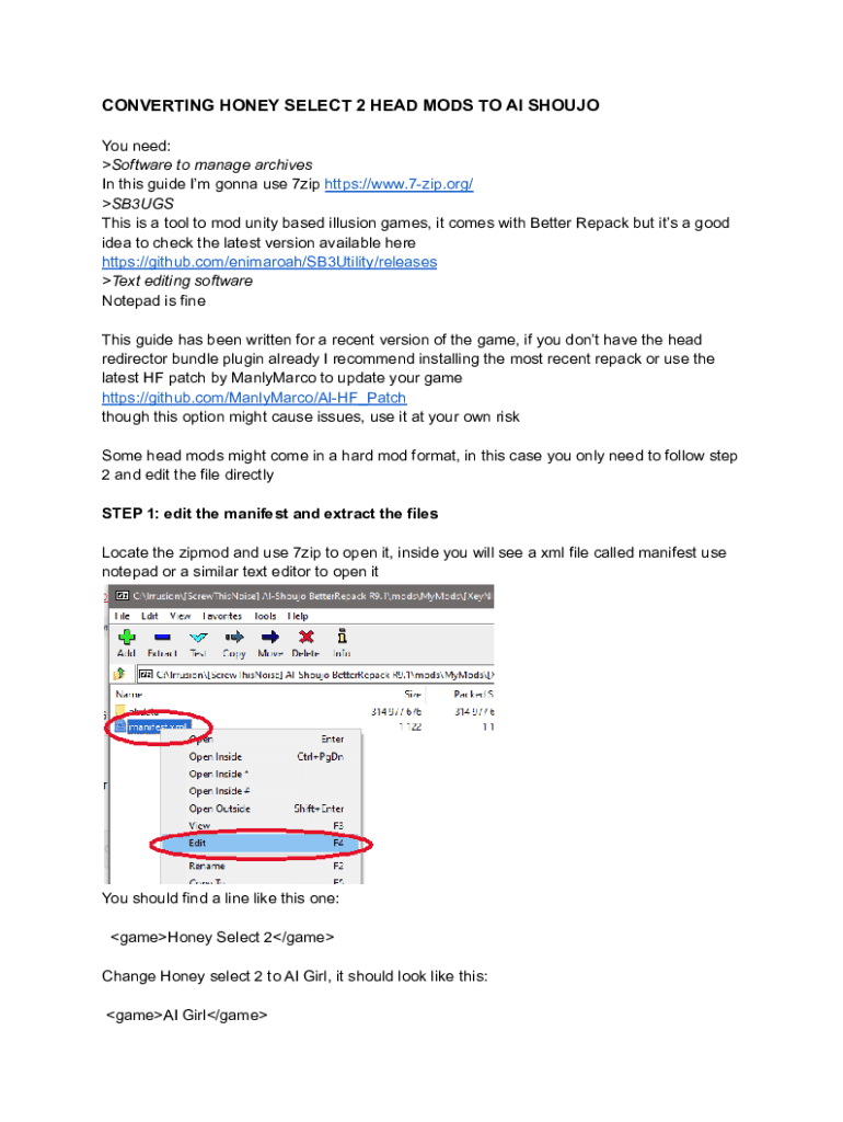 CONVERTING HONEY SELECT 2 HEAD MODS TO AI SHOULD You need: Software to manage archives In this guide I'm gonna use 7zip https://www.7zip.org/ SB3UGS This is a tool to mod unity based illusion games,