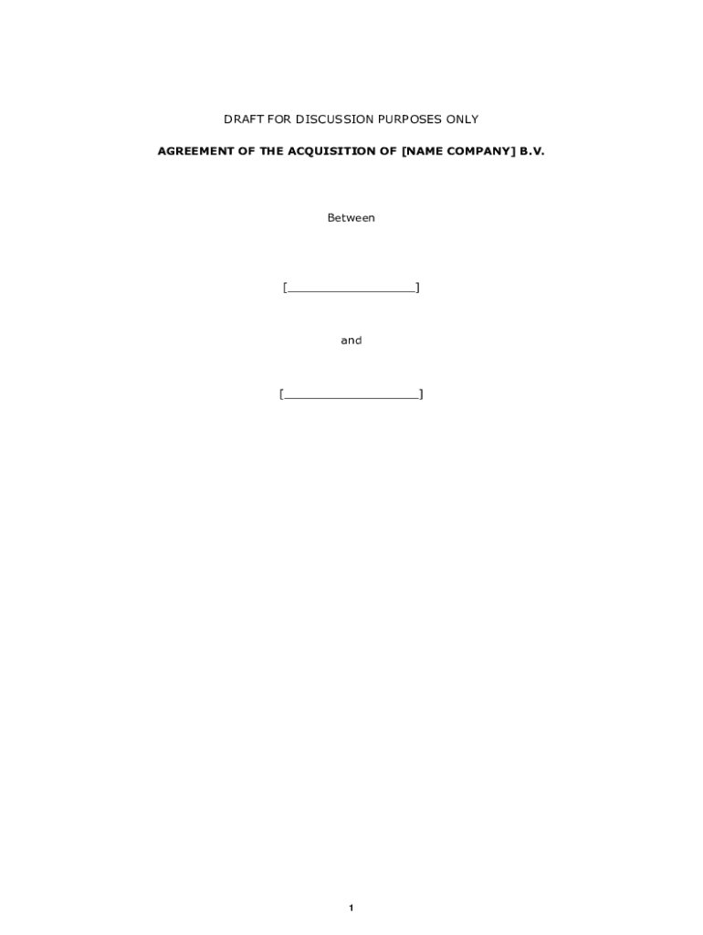 DRAFT FOR DISCUSSION PURPOSES ONLY AGREEMENT OF THE ACQUISITION OF [NAME COMPANY] B.V. Between[___]and[___]1DRAFT FOR DISCUSSION PURPOSES ONLY INDEXClause Page 1. Definitions ......................................................................................................