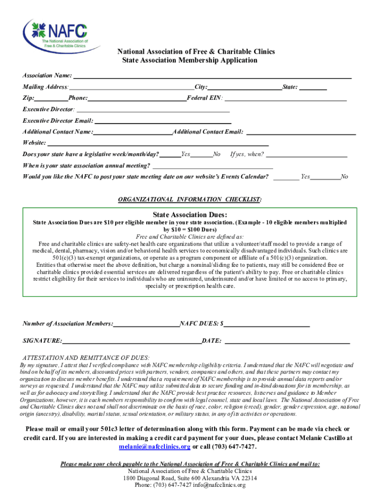 National Association of Free & Charitable Clinics State Association Membership Application Association Name: Mailing Address: Zip:City:Phone:State:Federal EIN:Executive Director: Executive Director