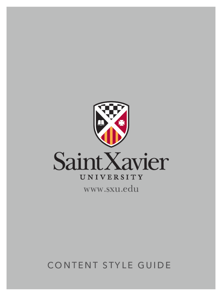 WWW.SFU.content STYLE GUIDECONTENT STYLE GUIDE Saint Xavier University has adopted this institutional style guide to provide accurateness and consistency among print and online materials that are