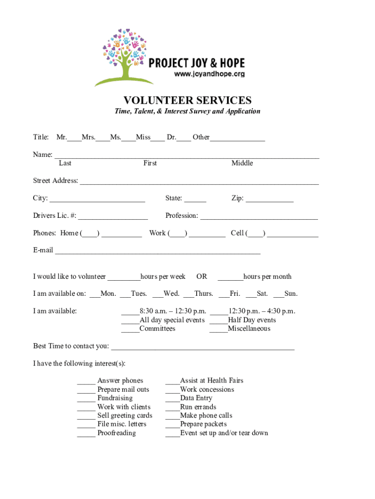 VOLUNTEER SERVICESTime, Talent, & Interest Survey and Application