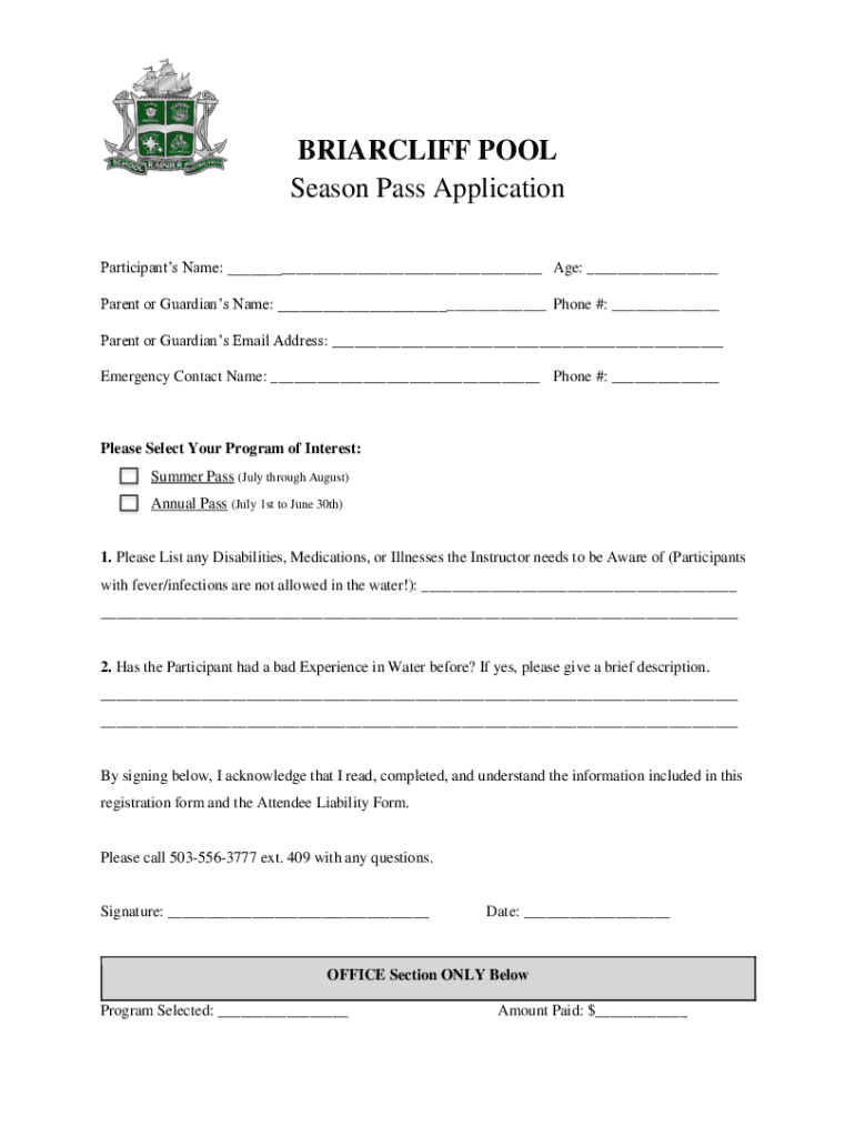 Get the free BRIARCLIFF POOL Season Pass Application - Connect Suite