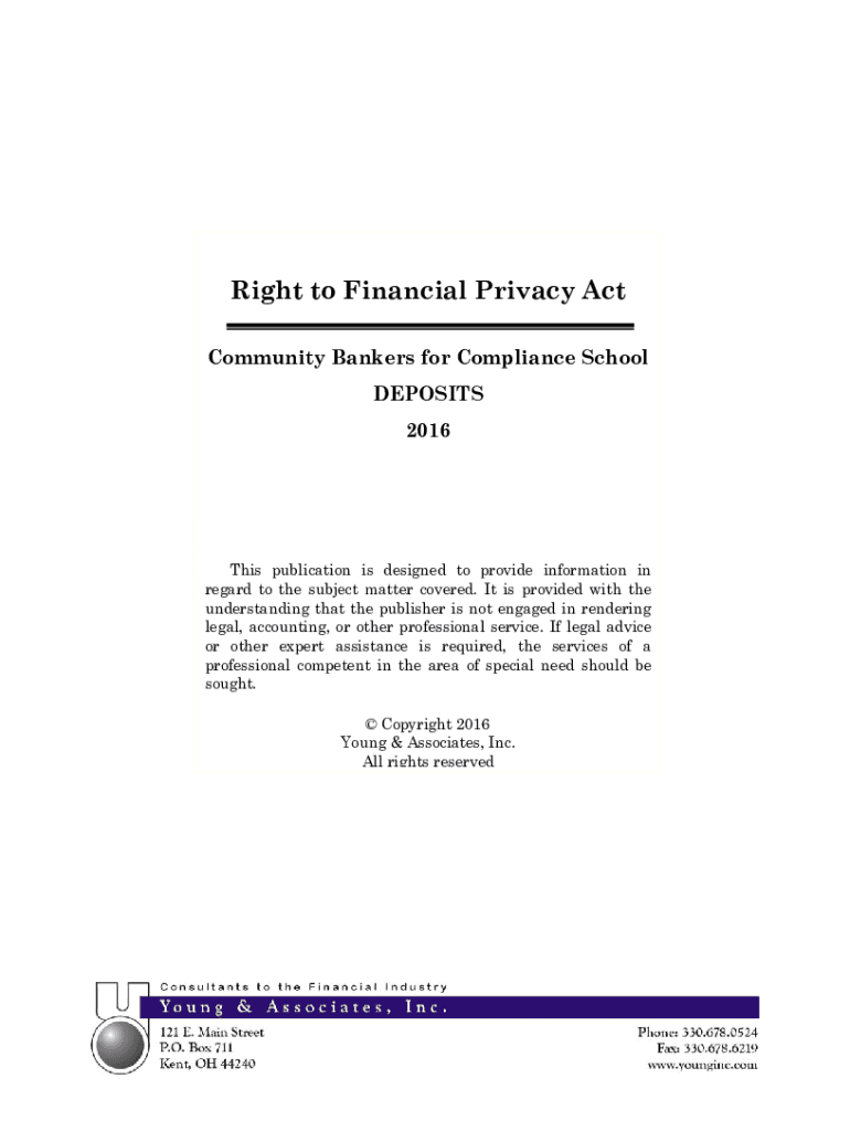 Right to Financial Privacy Act Community Bankers for Compliance School DEPOSITS 2016This publication is designed to provide information in regard to the subject covered. It is provided with the understanding