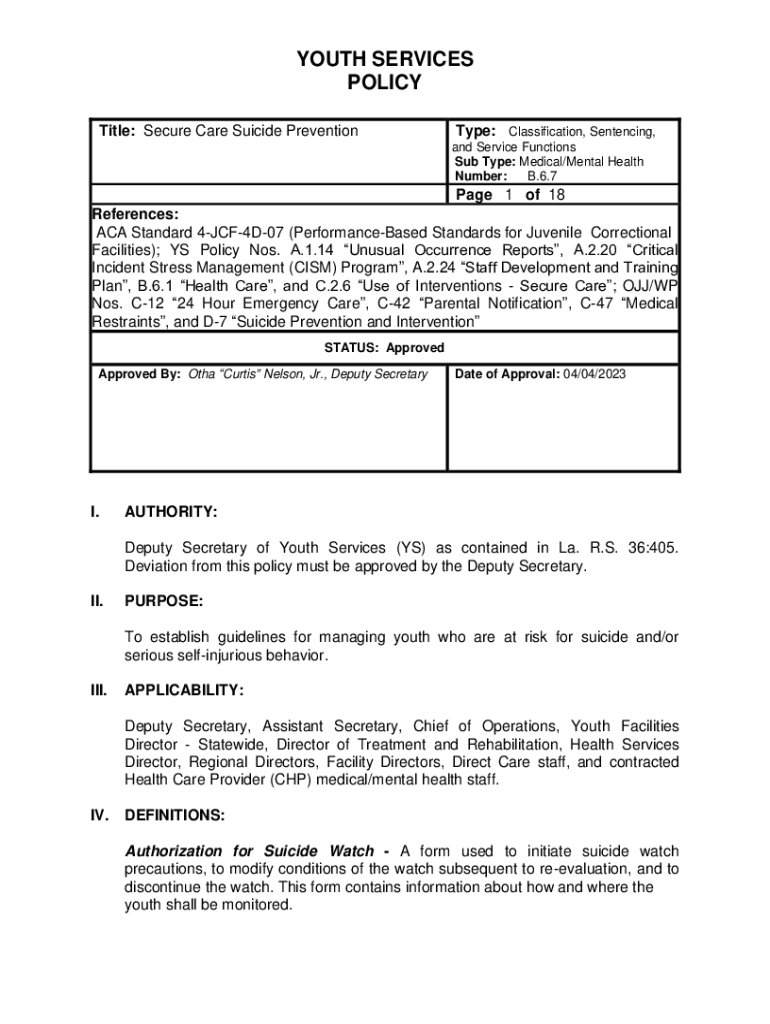 Title: Secure Care Suicide PreventionType: Classification, Sentencing,
