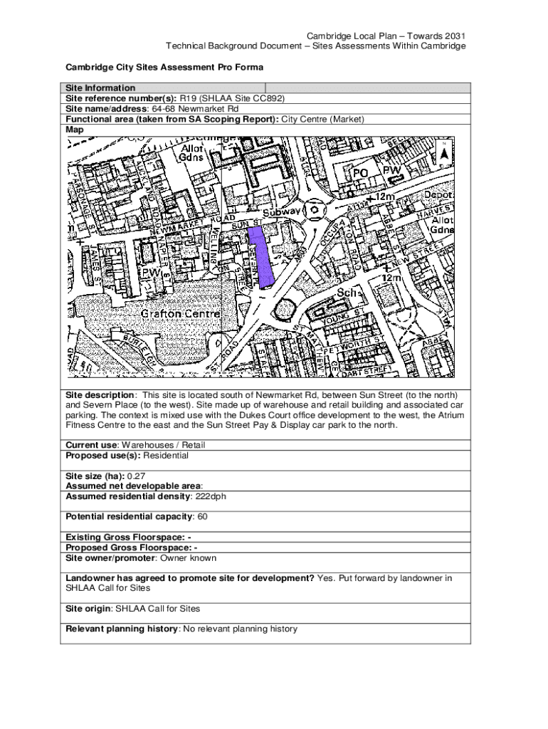 Get the free Assessment Form Site R19 - 64 - 68 Newmarket Road.doc