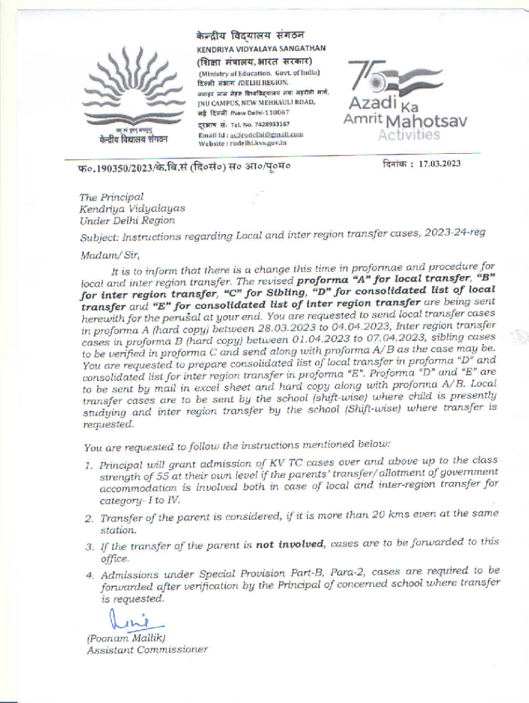 Get the free KVS Local transfer, Inter Region transfer and shift ... - YouTube