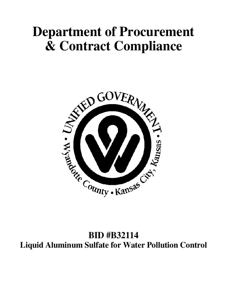 Department of Procurement & Contract Compliance BID #B32114 Liquid Aluminum Sulfate for Water Pollution ControlUnified Government Of Wyandotte County/Kansas City, Kansas MINIMUM SPECIFICATIONS AND