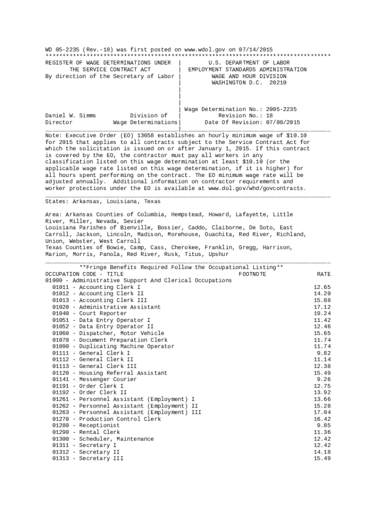 Template Wage Determinations Service Contract Act WD # 2015-5635 instructions