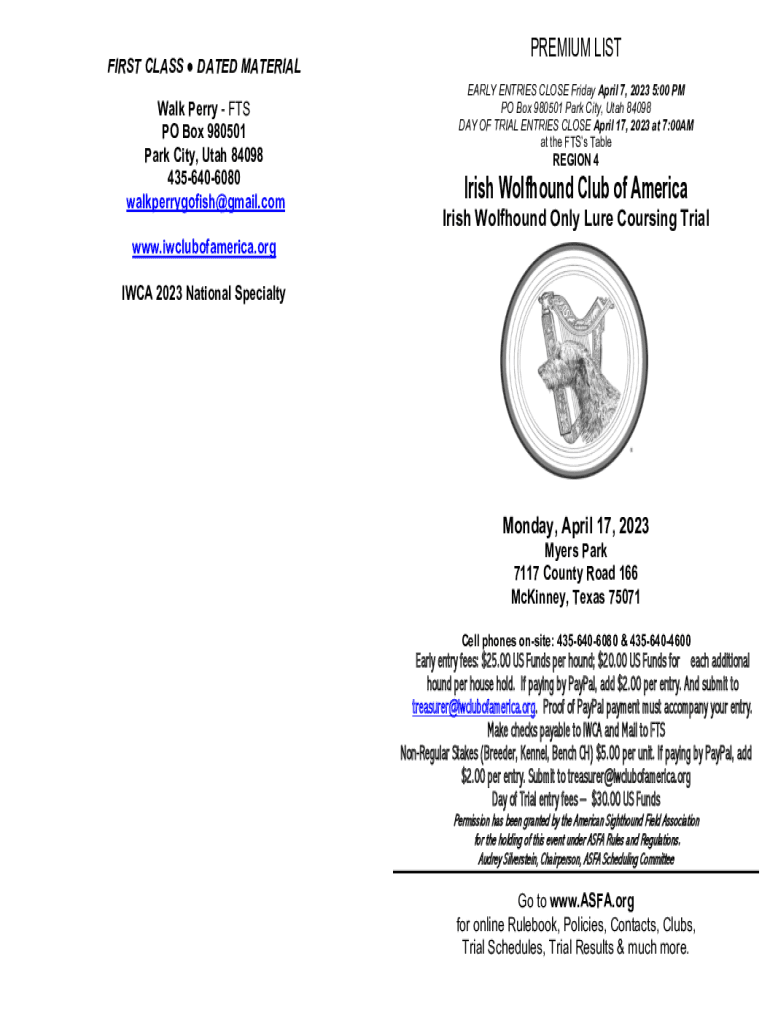 EARLY ENTRIES CLOSE Friday, April 7, 2023 5:00 PM