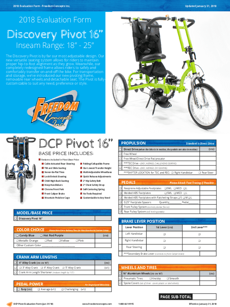 Updated January 31, 20182018 Evaluation Form Freedom Concepts Inc.2018 Evaluation Rediscovery Pivot 16 Inseam Range: 18 25The Discovery Pivot is by far our most adjustable design. Our new versatile
